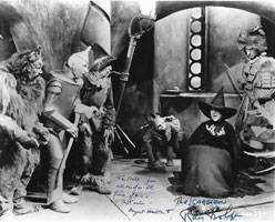 On the left is a photo with forged signatures that was peddled by an Ebayer who is still selling today (click the caption to see a close-up). Many years ago, he sold a ton of Oz-related and other photos, all inscribed to "Mike", mostly with fake Hamilton and Bolger autographs. I even saw one of his forgeries at a store in the Forum Shops in Las Vegas (incidentally, that store is known for selling fakes), priced in the multiple hundreds. Mike (his real name) is out of New York and is a first-class liar...with a 100% feedback rating.